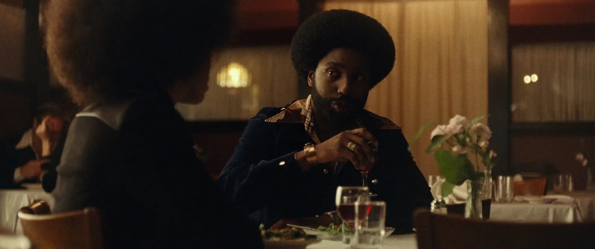 Cast: John David Washington as Ron Stallworth, Adam Driver as Flip Zimmerman, Topher Grace as David Duke, Laura Harrier as Patrice Dumas, Alec Baldwin as Dr. Kennebrew Beauregard, Jasper Pääkkönen as Felix Kendrickson, Corey Hawkins as Kwame Ture, Paul Walter Hauser as Ivanhoe, Ryan Eggold as Walter Breachway, Isiah Whitlock Jr. as Mr. Turrentine, Robert John Burke as Chief Bridges, Brian Tarantina as Officer Clay Mulaney, Arthur J. Nascarella as Officer Wheaton, Ken Garito as Sergeant Trapp, Frederick Weller as Master Patrolman Andy Landers, Michael Buscemi as Jimmy Creek, Damaris Lewis as Odetta, Ato Blankson-Wood as Hakeem, Dared Wright as Officer Cincer, Faron Salisbury as Officer Sharpe, Ashlie Atkinson as Connie Kendrickson, Victor Colicchio as Steve, Paul Diomede as Jerry, Elise Hudson as Librarian, Danny Hoch as Agent Y, Nicholas Turturro as Walker, Ryan Preimesberger as Jesse Nayyar, Harry Belafonte as Jerome Turner, Gina Belafonte as Gina B., Ernest Rayford as Josh the Waiter, James Campbell as Waiter, Jared Johnston as CSPD Officer Brickhouse, Michael J. Burg as CSPD Officer Myers, Jeremy J. Nelson as Records Room Officer, Nichelle Bolden as Student Activist, Donald Trump as Self (archive footage)(uncredited), David Duke as Self (archive footage)(uncredited)